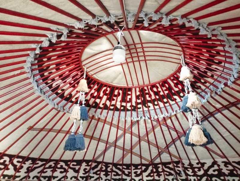 - Тюндюк (шанырак) — центральный круг купола, скрепляющий жерди.