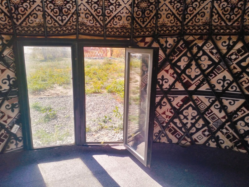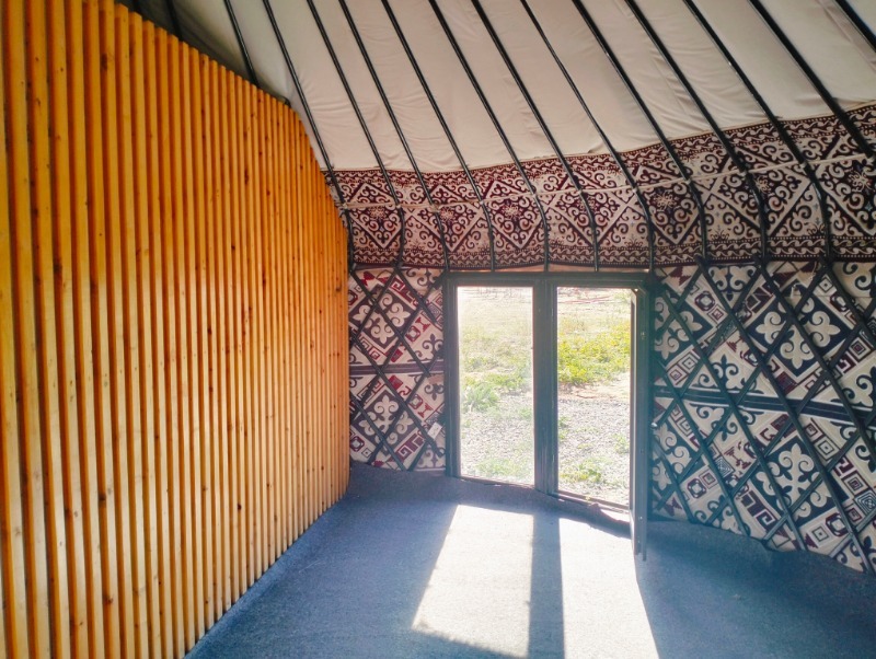 Юрта сочетает традиционные материалы (войлок, дерево, брезент) с современными решениями (стеклянные двери, лак, пропитка для дерева). Она экологична, гипоаллергенна и адаптируется под сезонные условия.